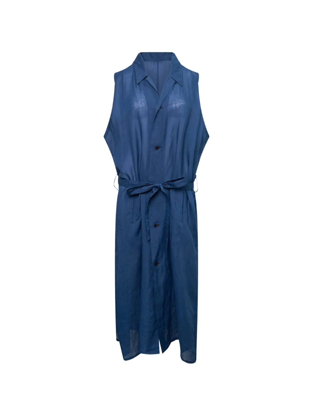 navy blue classic collar sleeveless front button fastening detachable waist belt rear vent