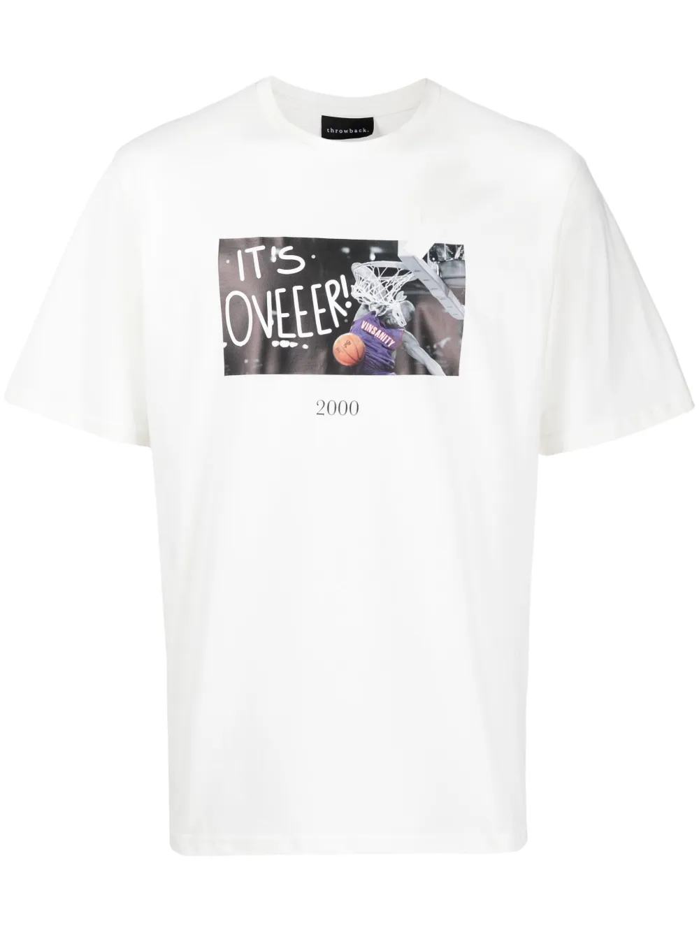 Over cotton T-shirt from Throwback. featuring white/multicolour, cotton, photograph print, text print, crew neck, short sleeves and straight hem.