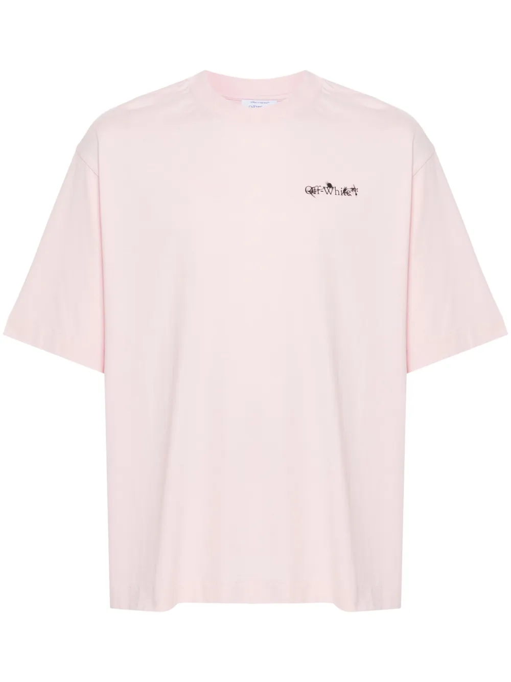 light pink cotton lightweight jersey logo print at the chest logo print to the rear signature Arrows motif crew neck short sleeves straight hem