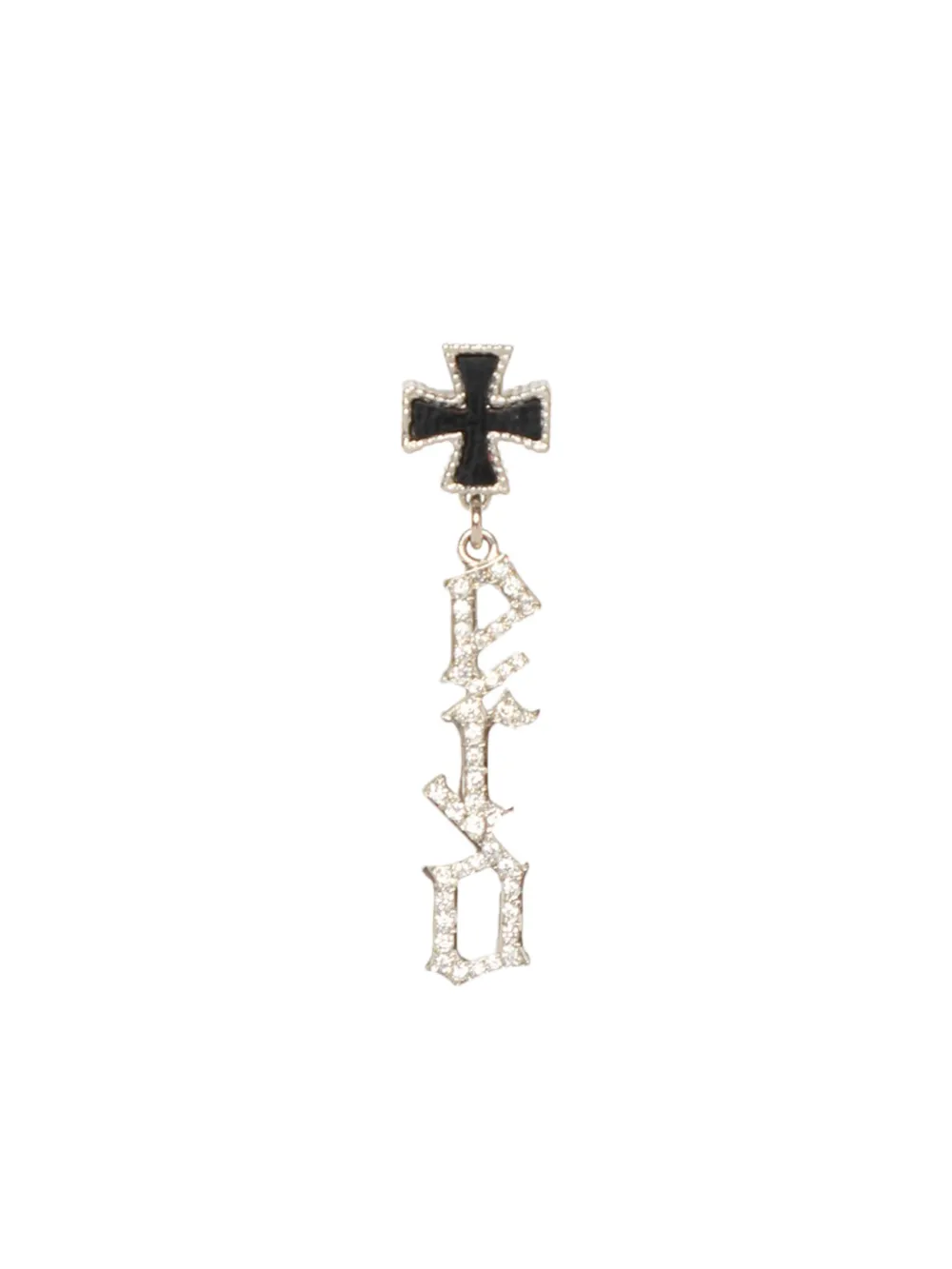 silver-tone 18kt white gold onyx stone signature Cross motif monogram plaque for pierced ears Please consider that this is sold as a single earring.