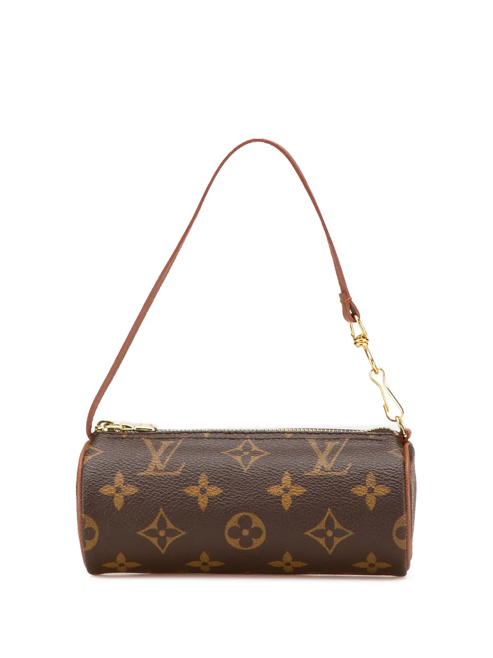 The Papillon Pochette features a monogram canvas body with leather trim, a flat leather strap, and a top zip closure. Brown. This item has no inclusions. Condition: EXCELLENT. This previously owned item is in near-perfect condition with no signs of damage or use. Please refer to the photos on this product page for a detailed view of the item, including any damages declared.