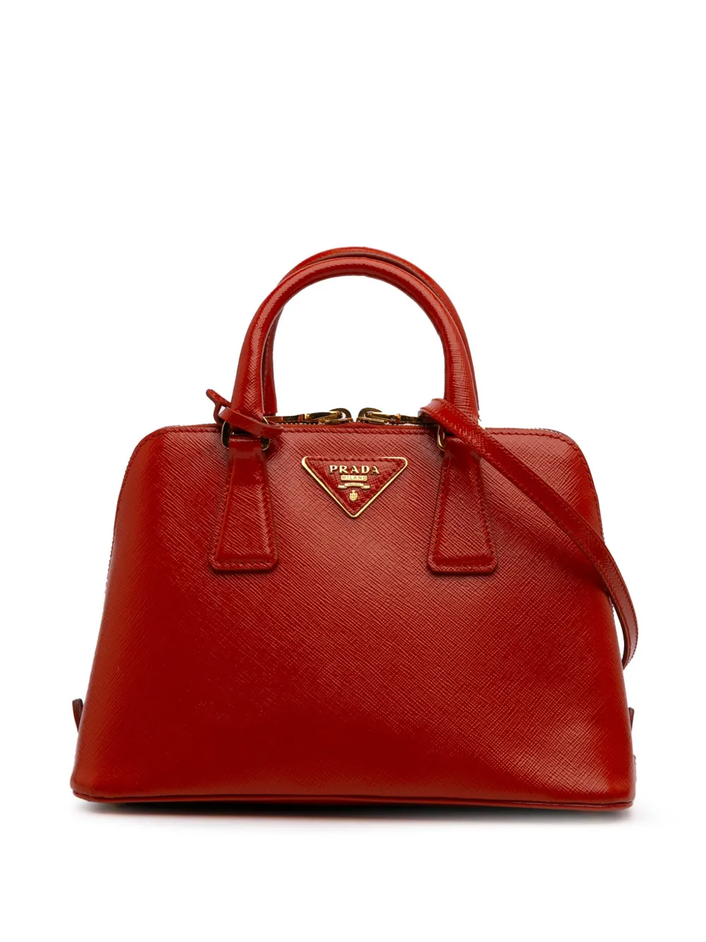 The Promenade features a patent saffiano leather body, rolled leather handles, a detachable flat leather strap, a top zip closure, an interior zip compartment, and interior zip and slip pockets. Red. Inclusions: shoulder strap, charm. Condition: GOOD. This previously owned and used item is in good condition with minimal signs of use. This may include fading of material or plating and scratches. Please refer to the photos on this product page for a detailed view of the item, including any damages declared.