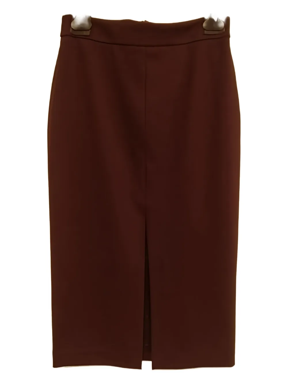 dark red rear zip fastening front slit pencil silhouette